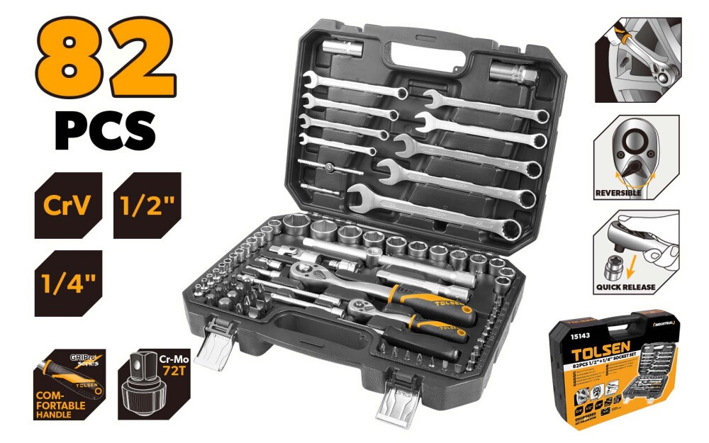 Набор 82 головок и ключей 1/2+1/4 Tolsen