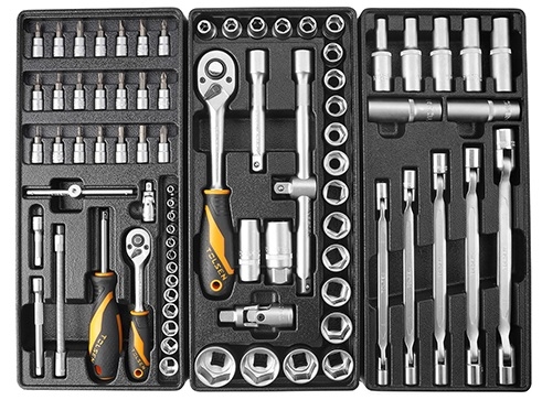 • 2 шт. Реверсивные трещотки 1/4″ + 1/2″ • 2 шт. Удлинители: 1/4″×50 мм; 1/4″×100 мм • 1 шт. универсальный шарнир 1/4″ • 1 шт. Удлинитель с подвижным шарниром планка 1/4″ • 1 шт. гибкий вал: 1/4″×150 мм • 1 шт. ручка отвертки: 1/4″×65 мм • 21 шт. биты для отвертки S2 1/4″x25 мм: 4, 5,5, 6,5 мм, PH1, PH2, PH3, PZ1, PZ2, PZ3, T10, T15, T20, T25, T30, T40, H2, H2,5, H3, H4, H5, H6 • 13 шт. 6-гранные головки 1/4″: 4, 4,5,5, 5,5, 6, 7, 8, 9, 10, 11, 12,13, 14 мм • 20 шт. 1/2″ 6-гранных головок: 8, 9, 10, 11, 12, 13, 14, 15, 16, 17, 18, 19, 20, 21, 22, 23, 24, 27, 30, 32 мм • 2 шт. Головки для свечей зажигания: 1/2″×16 мм; 1/2″×21 мм • 2 шт. Удлинители: 1/2″×125 мм; 1/2″×250 мм • 1 шт. 1/2″ 3-ходовой адаптер • 1 шт. 1/2″ универсальный шарнир • 7 шт. 1/2″ 6-точечные глубокие головки: 8, 10, 12, 13, 14, 17,19 мм • 5 шт. Двусторонний поворотный торцевой ключ: 8×9 мм, 10×11 мм, 12×13 мм, 14×15 мм, 17×19 мм