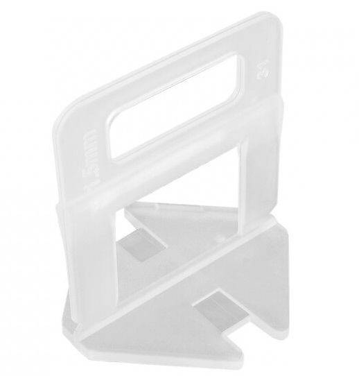 Конструкция клипсы обеспечивает стабильную ширину шва 1.5 мм по всей площади облицовки, что особенно важно для аккуратного внешнего вида готовой поверхности. После схватывания клея клипса легко удаляется контролируемым изломом, не повреждая края плитки и не влияя на качество шва. Полипропилен подобранной жёсткости удерживает плитку в нужном положении во время укладки, не деформируясь под нагрузкой.