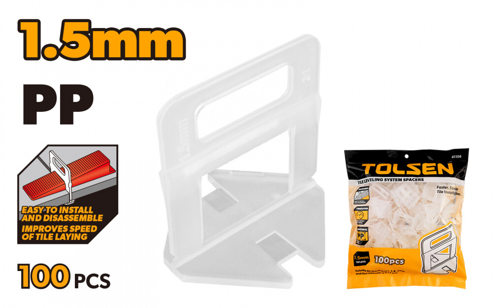 - Набор 100 клипс для выравнивания плитки 1.5мм Tolsen