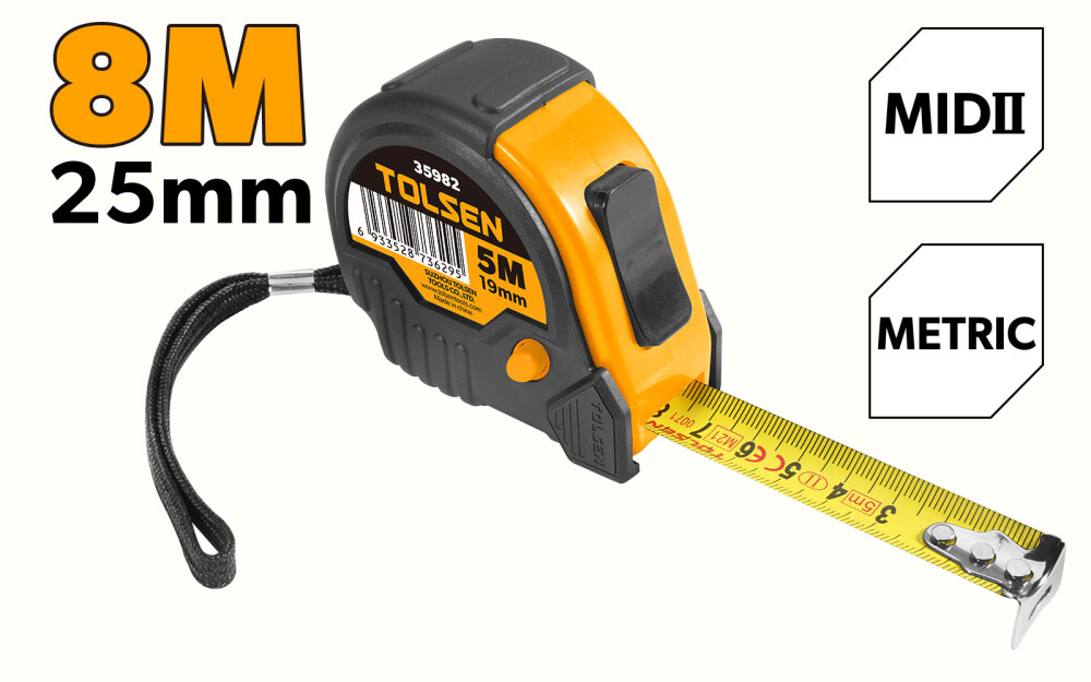 - Рулетка 8м 25мм Tolsen