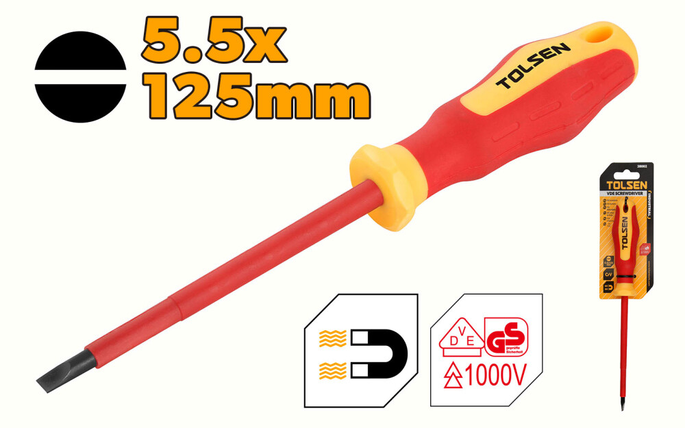 Отвертка диэлектрическая SL5.5x125мм 1000V Industrial Tolsen