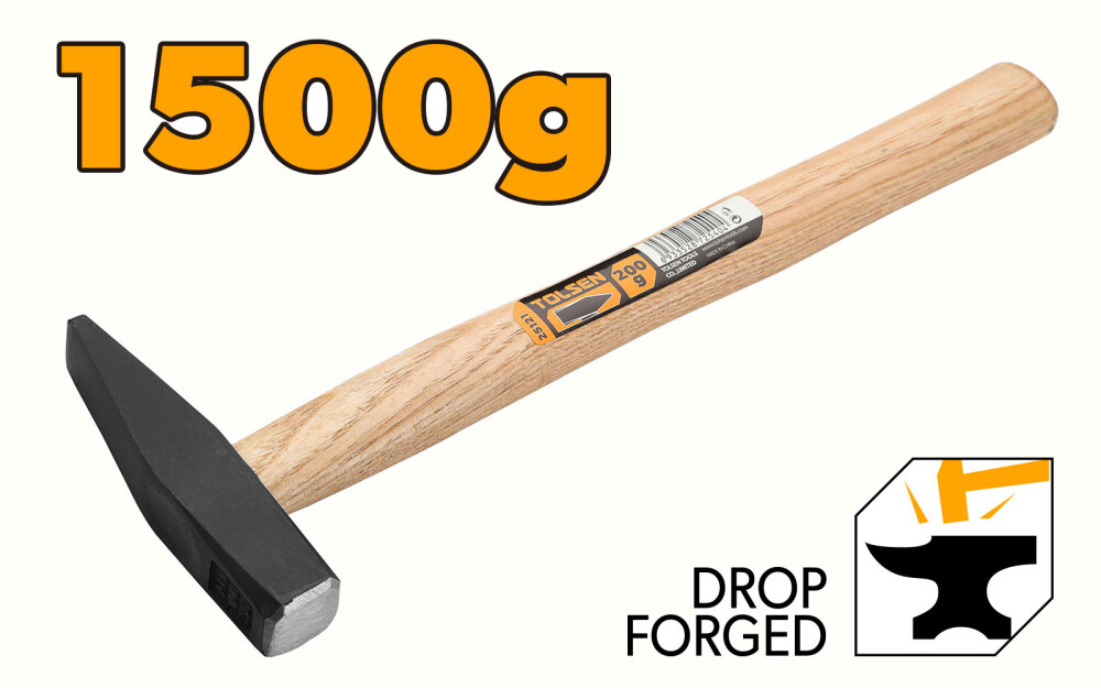Вес 1500 г обеспечивает мощные и эффективные удары, что делает молоток идеальным инструментом для забивания крупных гвоздей, монтажных и демонтажных задач, где требуется высокая ударная энергия. Головка молотка изготовлена из форжированной углеродистой стали с термообработкой, что повышает её прочность, стойкость к износу и долговечность при многократных ударах.