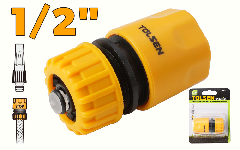 Конектор быстросъёмный для шланга 1/2 с клапаном Tolsen