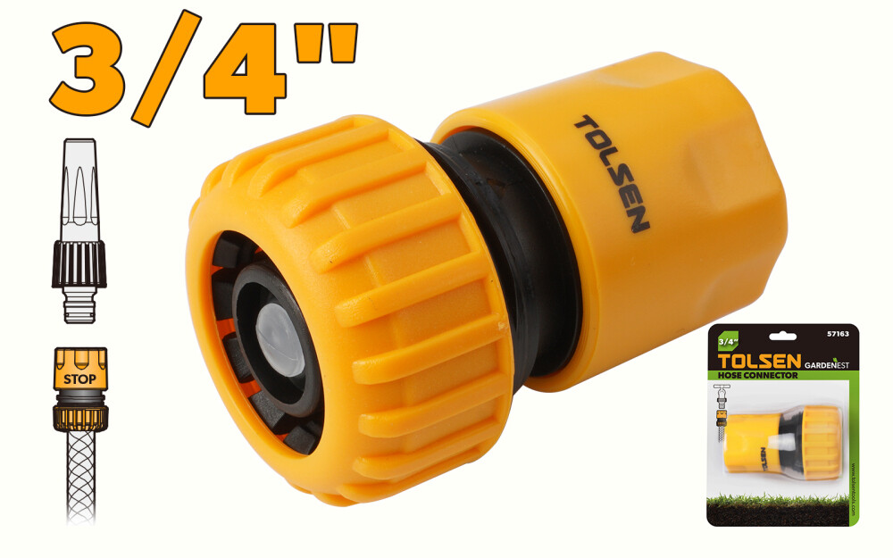 - Конектор быстросъёмный для шланга 3/4 с клапаном Tolsen