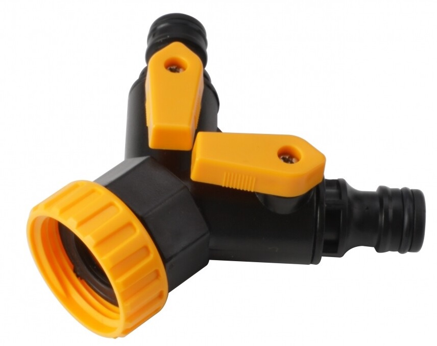 Позволяет пользователю индивидуально контролировать подачу воды, что особенно полезно при необходимости адаптации к разным видам растений или поверхностей. Две различных резьбы одновременно (3/4" + 1"). Повышает универсальность — разветвитель подходит как к стандартным, так и более крупным соединениям. Пластиковый корпус (PP + ABS). Обеспечивает устойчивость к погодным условиям, химическим веществам и механическим ударам — идеален для наружного применения.
