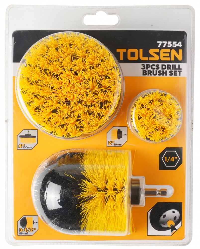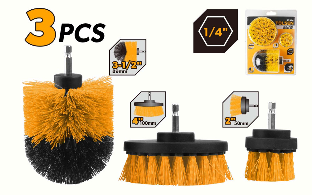 Setul oferă trei dimensiuni (Ø 50, 89 și 100 mm) pentru curățare în locuri mici și suprafețe mari. Coada hexagonală 1/4″ cu schimbare rapidă permite montaj instant fără accesorii suplimentare.
