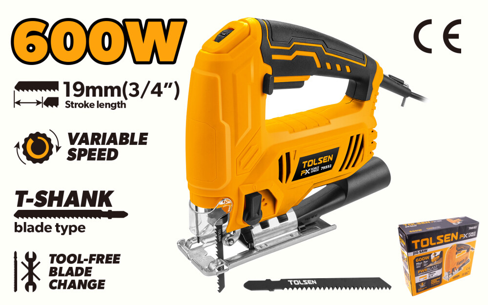 - Motor de 600 W oferind performanţă ridicată chiar şi în lemn dur.