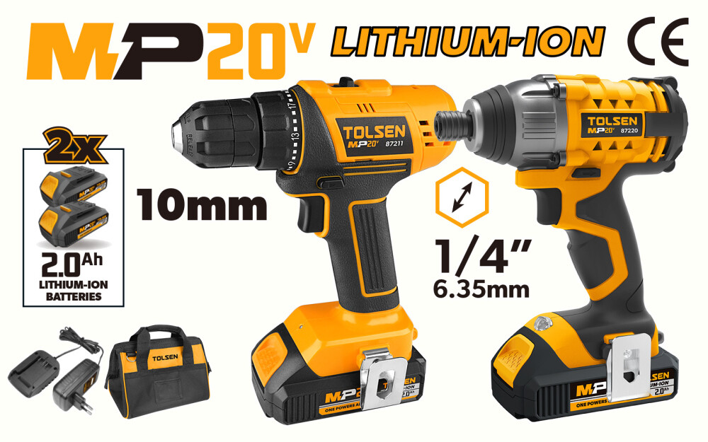 Set masina de insurubat + Impact Li-Ion MP20V 2Ah Tolsen