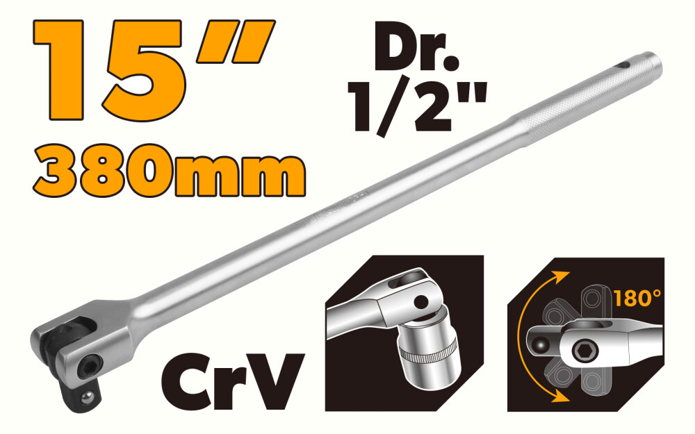 Articulația pivotantă permite rotirea terminalului până la 180 °, facilitând accesul la șuruburi și piulițe în spații înguste sau greu accesibile Fabricat din oțel crom-vanadiu (Cr-V) durabil și tratat termic, asigurând o durată lungă de viață și rezistență la solicitări mecanice intense.