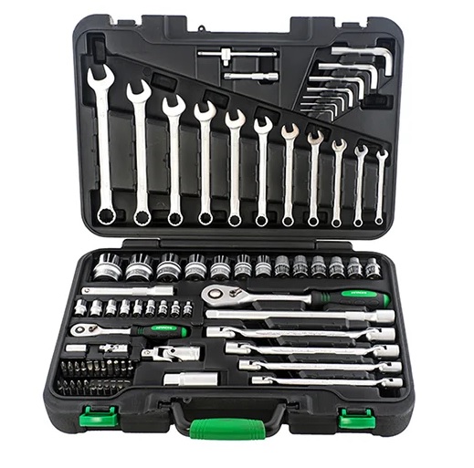 Carcasa din plastic este folosită pentru depozitarea și transportul trusei de scule. Toate articolele sunt bine ambalate și fixate în găuri speciale. Mânerele cu clichet sunt realizate dintr-un material bicomponent și nu alunecă în palmă.