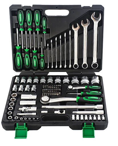 Carcasa din plastic este folosită pentru depozitarea și transportul unui set de unelte. Toate articolele sunt bine stivuite și fixate în nișe speciale. Mânerele sculelor sunt realizate dintr-un material bicomponent și nu alunecă în palmă.