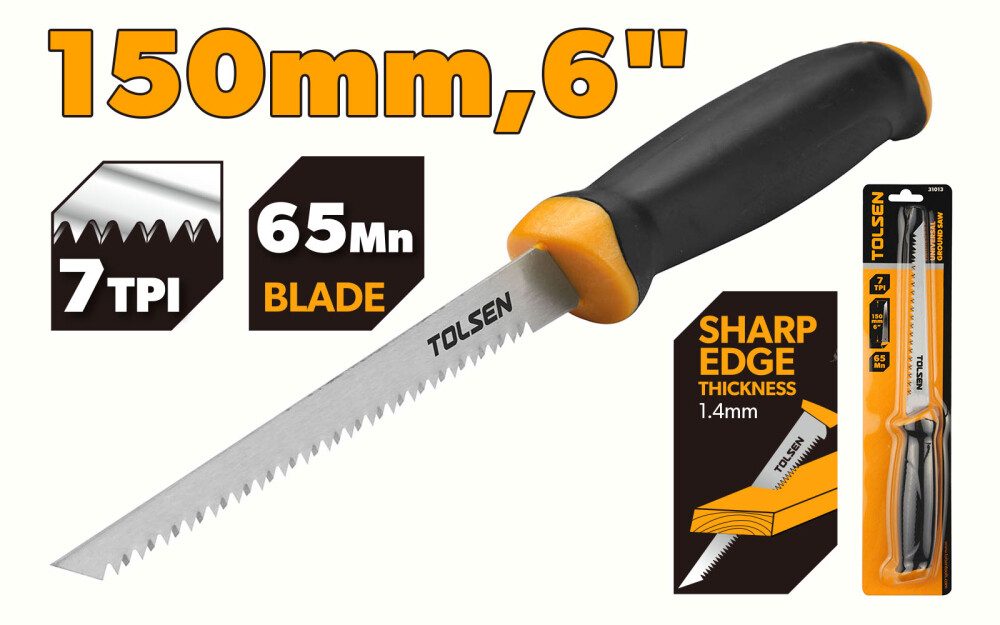 Oțelul 65Mn și profilul de dinți 7 TPI asigură tăieturi curate și eficiente pentru gips-carton, lemn subțire sau materiale compozite — ideale pentru lucrări de renovare sau tâmplărie. Datorită lungimii reduse, ferăstrăul este ușor de manevrat chiar și în spații limitate — comod pentru tăieri detaliate, lucrări de finisaj sau tâmplărie fină.