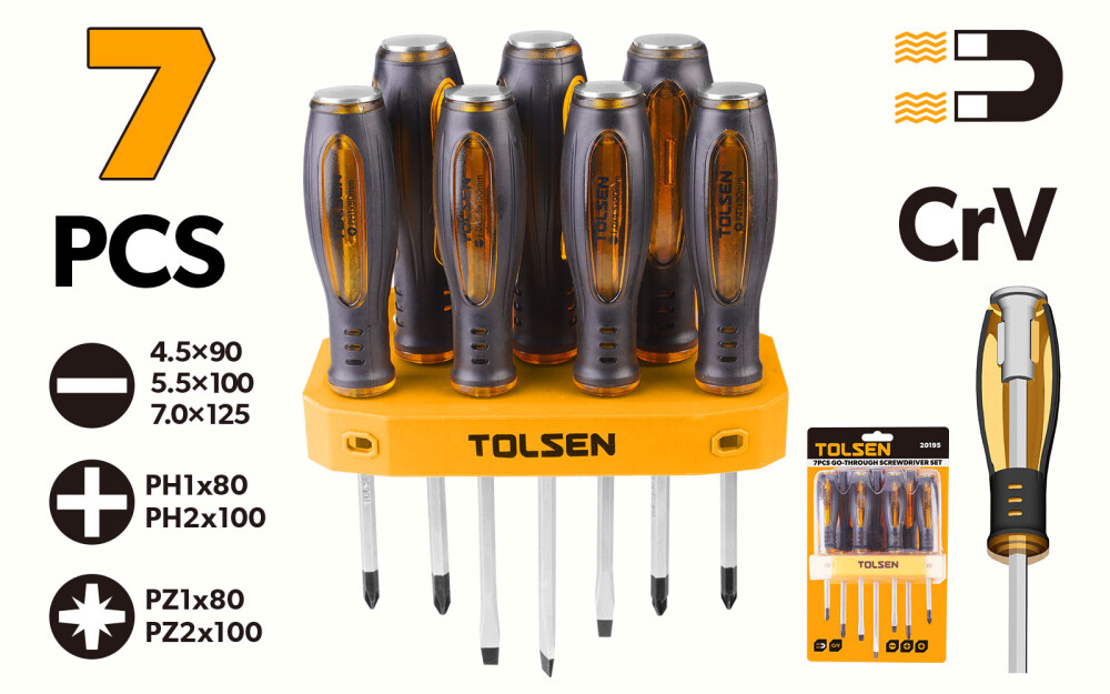 - Set cu șurubelnițe de diferite tipuri — SL, PH și PZ pentru aplicații variate.