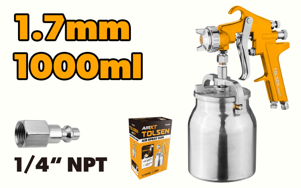Пистолет покрасочный пневматический 1,7мм 1000мл Tolsen