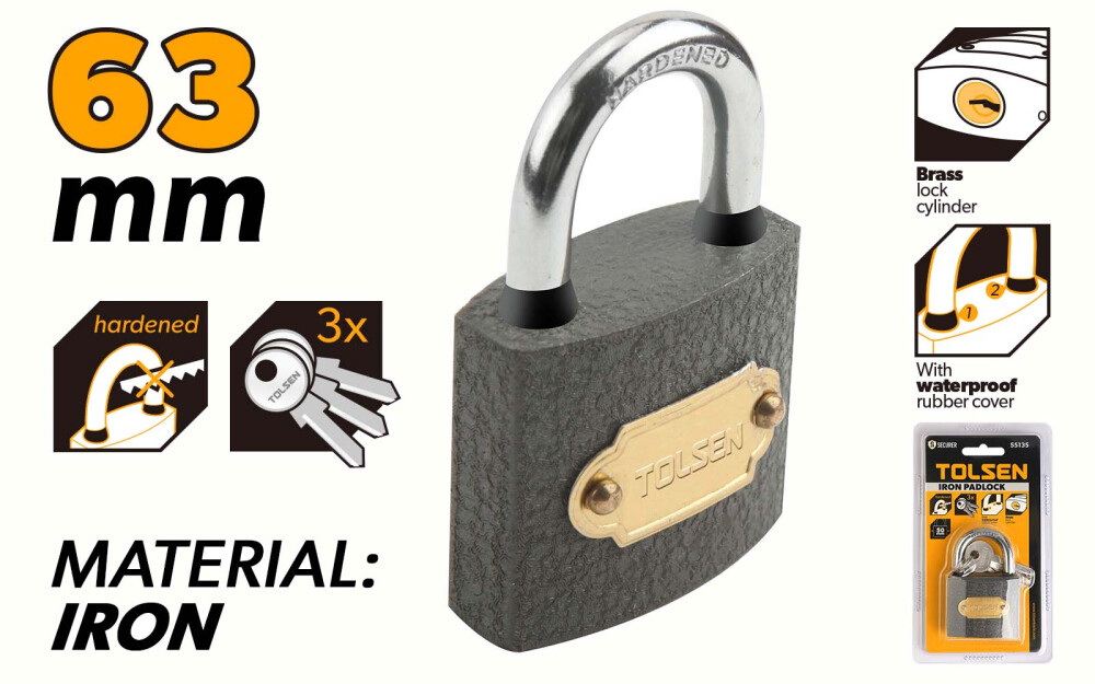 - Замок навесной металлический 63мм Lockplus Tolsen