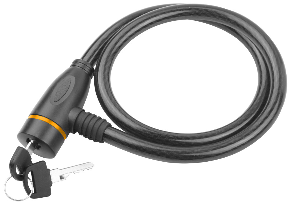 Длина 800 мм позволяет легко обмотать велосипед, а компактная конструкция удобна для ношения на раме или в сумке. ПВХ-оболочка защищает металлический трос от влаги и коррозии, продлевая срок службы замка. Доступный по цене и удобный в эксплуатации — идеальный выбор для городских велосипедистов.