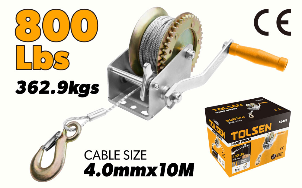 Усиленный стальной трос длиной 10 метров — обеспечивает возможность работы с грузами на значительном расстоянии и гарантирует высокую прочность при натяжении.